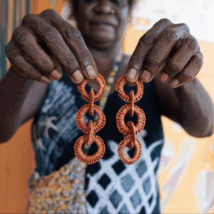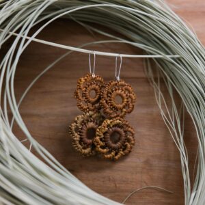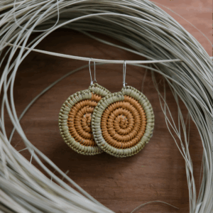 Hand woven pandanus jewellery at Injalak Arts Centre showcases the exquisite craftsmanship of the Indigenous women artists in West Arnhem Land. Injalak earrings and necklaces are made from locally sourced pandanus and natural dyes, and each piece of jewellery is unique. The earrings are adorned with sterling silver safety hooks.