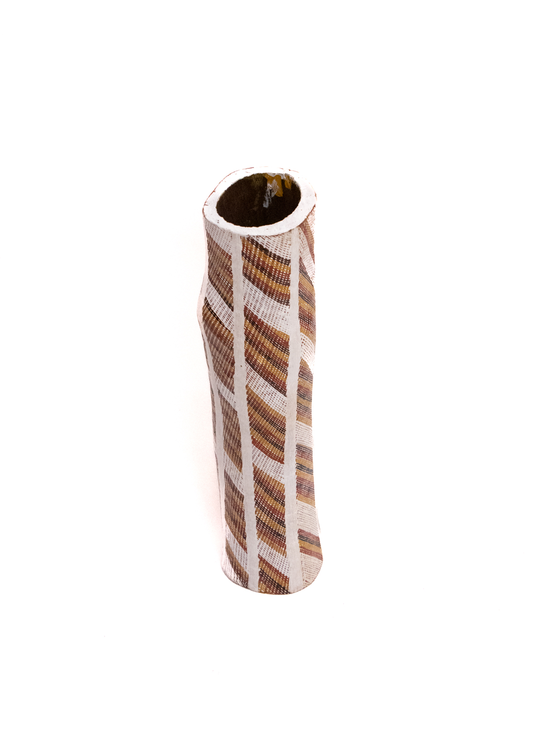 The Lorrkon is a log, naturally hollowed out by termites, which was traditionally used as a coffin for burials and ceremonies. The Kunwinjku people of Western Arnhem Land painted these with ceremonial designs and used them to store the bones of deceased relatives. The bones were wrapped in paperbark before placing them in the Lorrkon, which were erected on a site of significance to the deceased. In some areas, bones were placed in rock shelters instead.