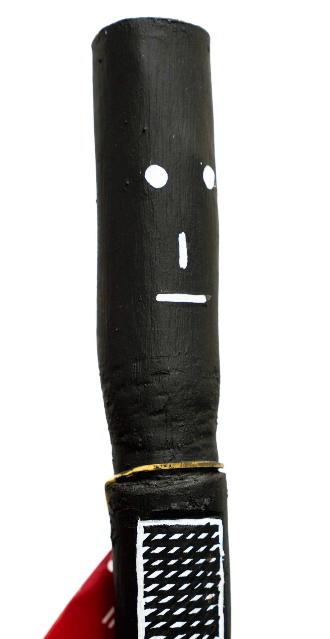 According to the Kunwinjku people of West Arnhem Land, Mimih spirits were the original spirit beings, who taught Aboriginal people many of the skills they needed to survive in the bush. They also taught aspects of ceremony. Mimih spirits are believed to inhabit the rocky escarpments around Gunbalanya but because they are extremely timid, they are rarely seen by humans. They are frequently depicted in the rock art of Arnhem Land as small, dynamic figures, often shown with a range of hunting tools such as spears, spear throwers, dilly bags and fire sticks.